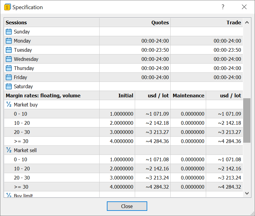 预付款的计算依据是规格窗口打开时的交易品种价格,而不是实时更新。因此,这些数值应被视为具有指示性。要根据当前价格重新计算数值,请重新打开交易品种规格。